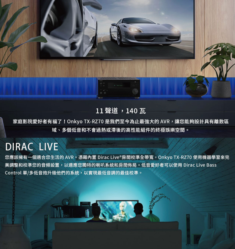 對於小客廳到透天大空間、從影劇到遊戲的高階玩家,RZ70 以聲學校正、擴充彈性與易用性,完成真正的旗艦體驗。