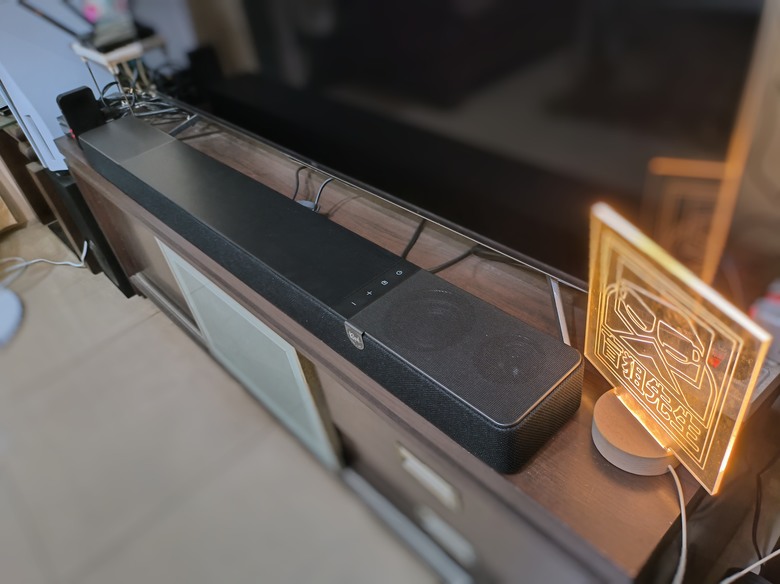 「Klipsch FLEXUS CORE 200」的本體幾乎與55"電視等寬(112公分)但卻重達8.5公斤,與他牌旗艦聲霸相比甚至還多重了一公斤,足六個聲道(3.1.2)的單體用料有多紮實。