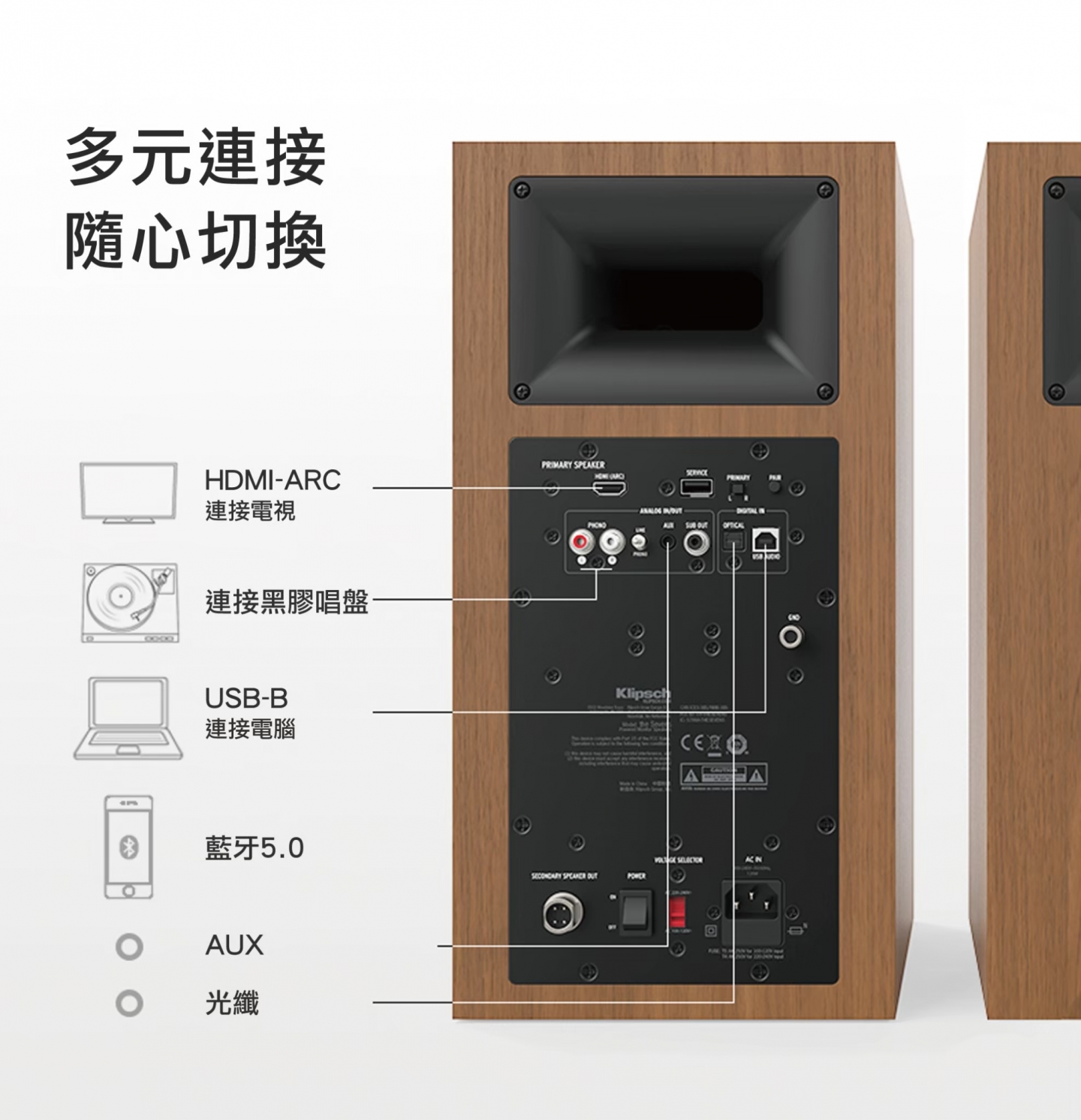 輸入:HDMI-ARC with CEC、藍牙、光纖、AUX、USB Digital、Phono/Line