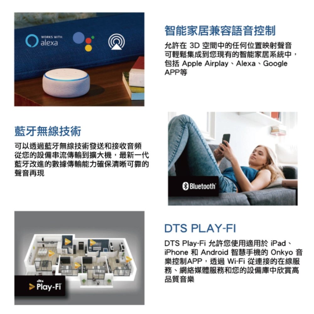 日常聽歌,Works with Sonos、AirPlay 2、Chromecast、DTS Play-Fi、Roon Tested 與 802.11ac Wi-Fi 讓高解析串流更穩;深夜觀影可用 雙向藍牙 aptX HD 推送到無線耳機。