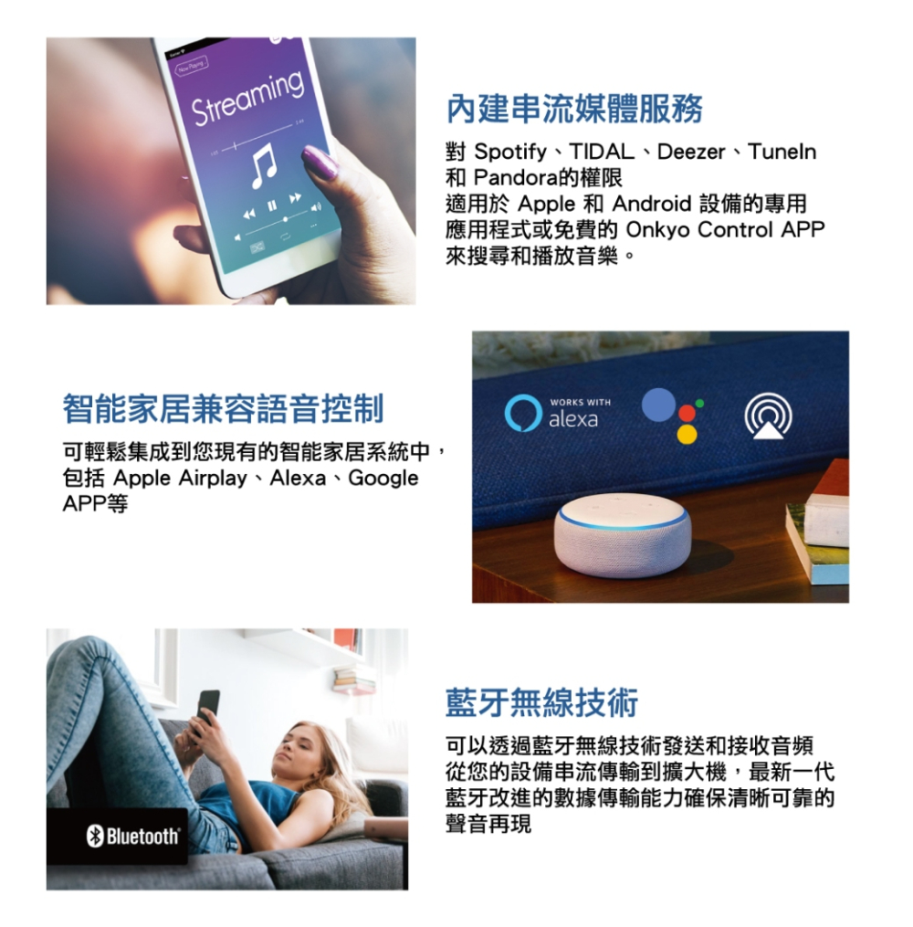 支援串流服務:Spotify,Amazon Music HD,Pandora,TIDAL,Deezer,TuneIn