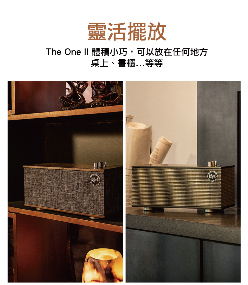 Klipsch The One II 是一款桌上型、市電供電的藍牙喇叭,主打小體積的高音質。它採 2.1 聲道設計:雙 2.25 吋全頻單體搭配 4.5 吋低音單體,並以密閉式箱體控制共振,帶來 56Hz–20kHz 的均衡頻段與最高 103dB 的充足音量;無論是客廳聽音樂、餐桌播放 Podcast,或小型聚會背景音,都能兼顧清晰與厚度。