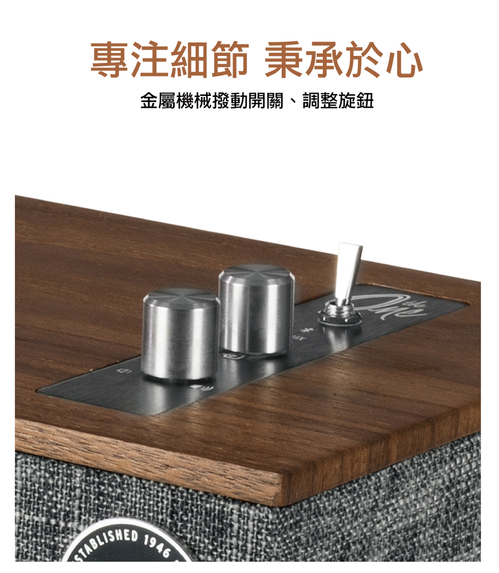 連線提供 Bluetooth 4.0,按住 Source 鍵即可快速配對;也可用 3.5mm 類比輸入連接電視耳機孔、播放器或電腦。外觀採真木貼皮與金屬旋鈕,質感與易用性兼具。若你需要的是「好聲音+好擺位+操作簡單」的一體式喇叭,The One II 是理性的居家升級選擇。