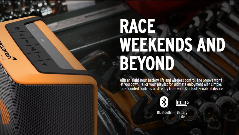 頂部控制鍵設計直覺,開箱附 輪胎毛毯拉鍊收納盒與充電配件,隨手就走。若你需要「小體積+耐用度+高相容」的便攜喇叭,Groove McLaren 是在日常、露營與短途旅行都合用的務實選擇。