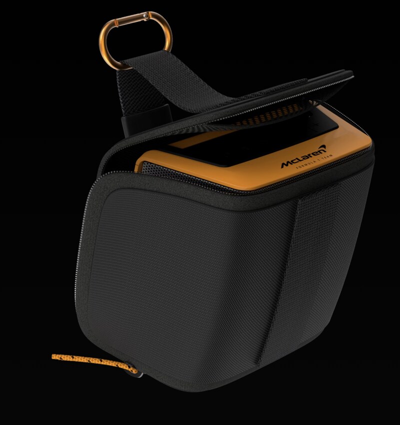 戶外使用具 IP56 防塵防潑水,雨滴、沙塵不慌;內建電池最長 8 小時,以 Micro-USB(5V/2A) 充電,搭配 McLaren 專屬變壓器可加速充電。